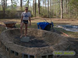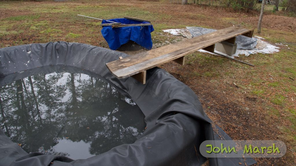 On April 1 we finished the berm that would border the new clay pit. The liner for the pit arrived a few days later. On April 7, I built a chute that I could use to carry the clay to the new pit.
